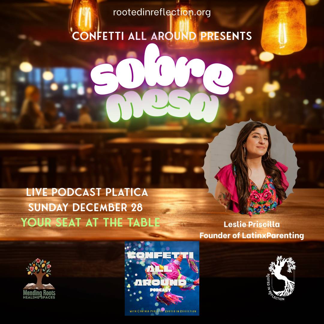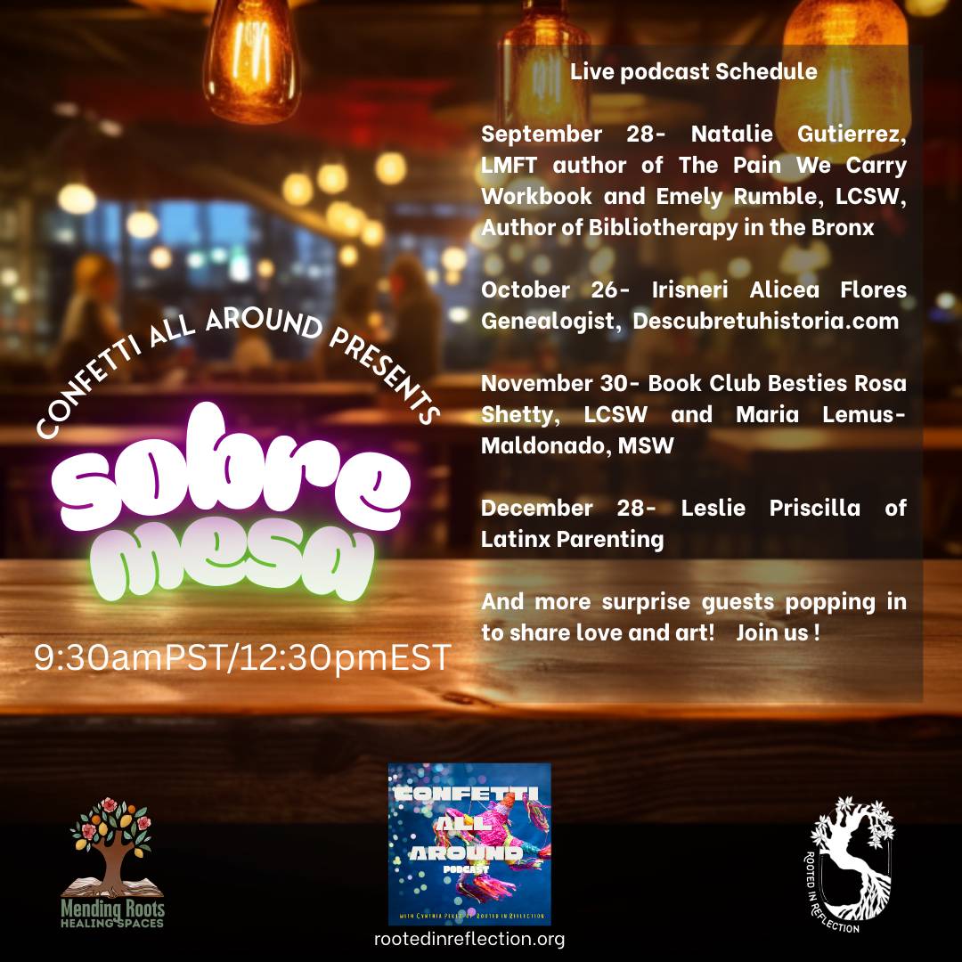 Every week will want to feature an artist to play music or read their work, etc. If you would like to join future sobremesas as an artist please email at cynthia@rootedinreflection.org